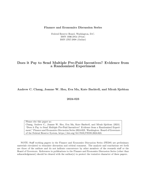 【Federal Reserve Board】【20240415】发送多个预付费激励是否有效?来自随机实验的证据-23页 行业研究