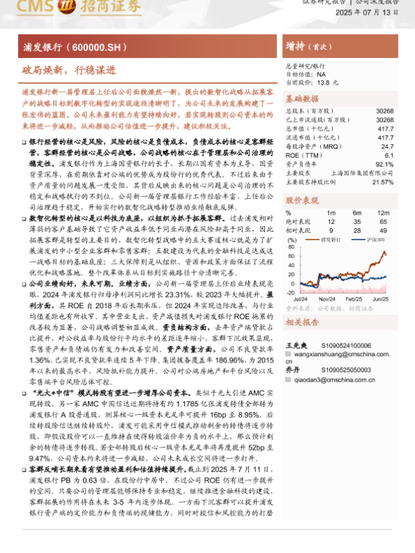 【海通证券】【20250713】浦发银行-600000.SH-破局焕新,行稳谋进-43页 证券期货研究报告