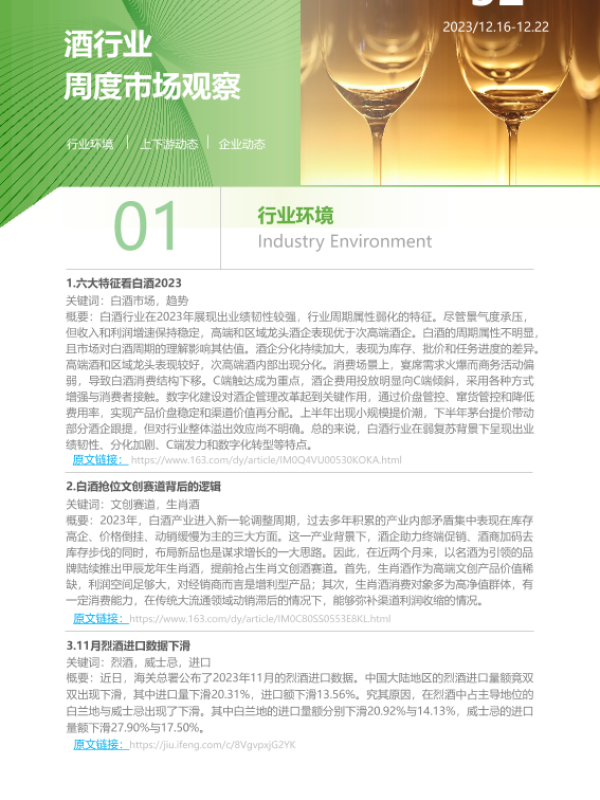 【艾瑞咨询】【20231222】2023年第52周:酒行业周度市场观察-4页 行业研究