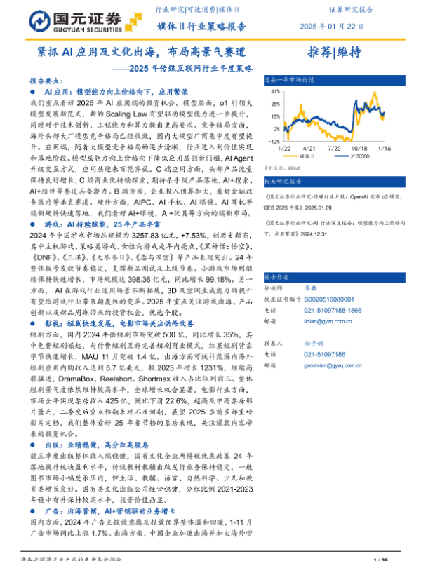 【国元证券】【20250124】2025年传媒互联网行业年度策略:紧抓AI应用及文化出海,布局高景气赛道-36页 行业研究