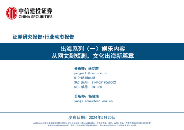 【中信建投证券】【20240520】传媒行业出海系列(一)娱乐内容:从网文到短剧,文化出海新篇章-43页 行业研究