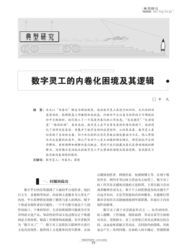 【中国青年研究】【20220301】数字灵工的内卷化困境及其逻辑-9页 行业研究