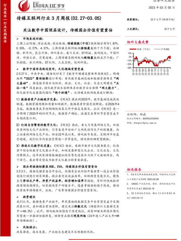 【国联证券】【20230305】传媒互联网行业3月周报:关注数字中国顶层设计,传媒国企价值有望重估-15页 行业研究