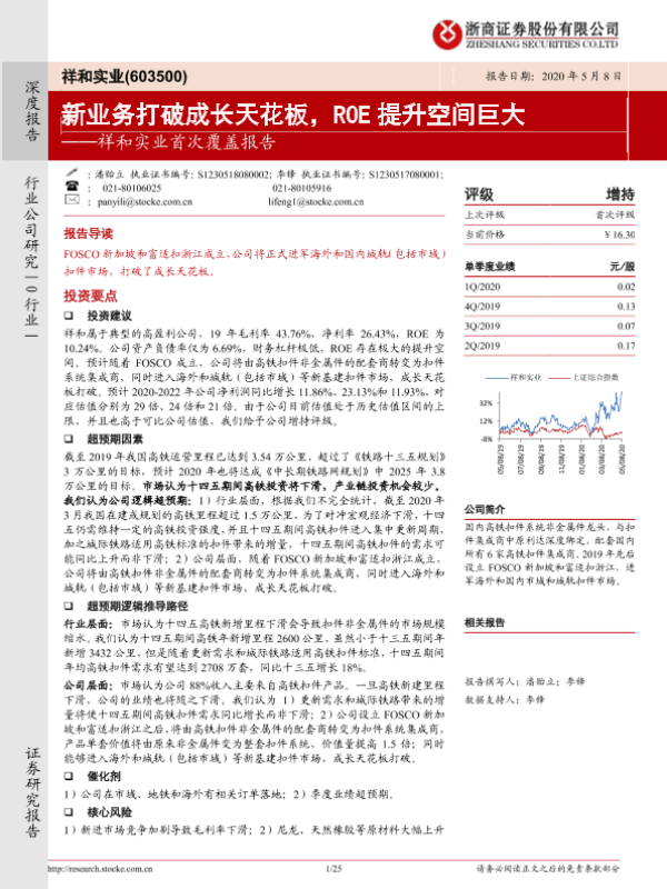【浙商证券】【20200508】祥和实业首次覆盖报告:新业务打破成长天花板,ROE提升空间巨大-25页 行业研究