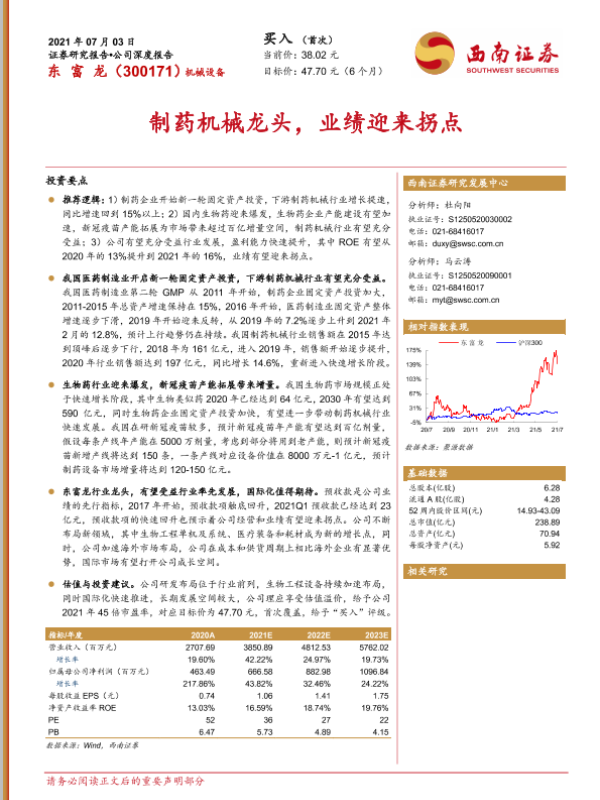 【西南证券】【20210703】制药机械龙头,业绩迎来拐点-22页 行业研究