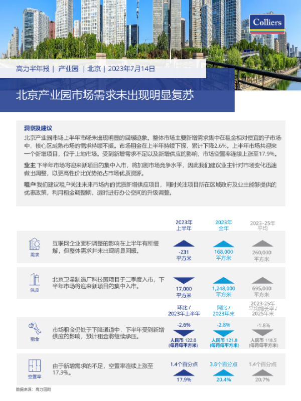 【高力国际】【20230714】2023年上半年北京产业园区市场回顾与展望-4页 行业研究