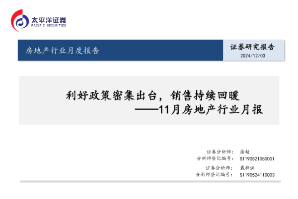 【太平洋证券】【20241203】11月房地产行业月报:利好政策密集出台,销售持续回暖-16页 行业研究