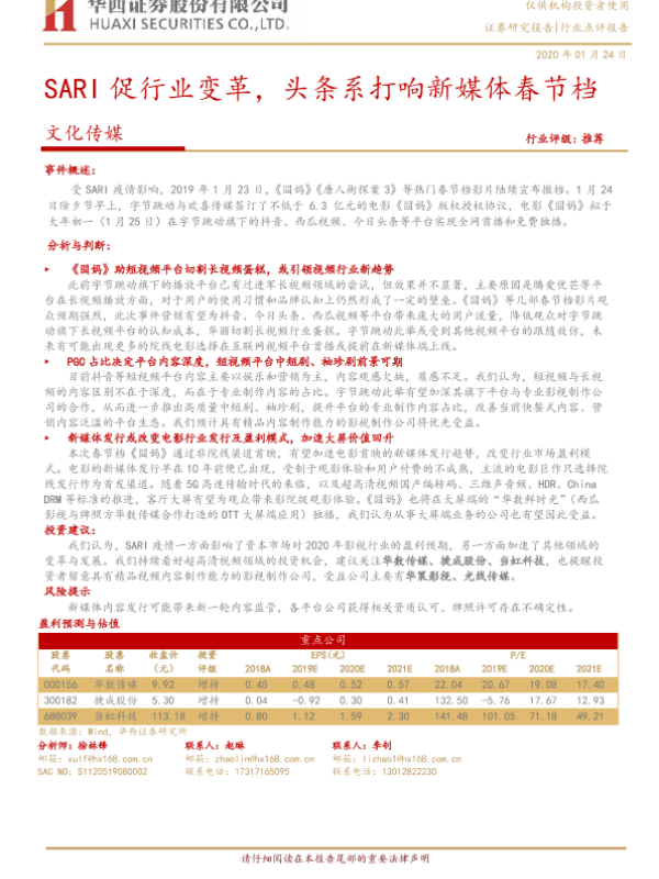 【华西证券】【20200124】SARI促行业变革,头条系打响新媒体春节档-3页 行业研究