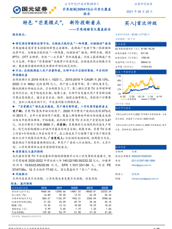 【国元证券】【20210420】芒果超媒首次覆盖报告:特色“芒果模式”,新阶段新看点-45页 行业研究