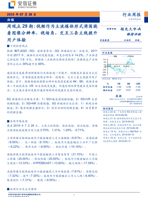 【安信证券】【20190728】视频作为主流媒体形式将围绕着图像分辨率、视场角、交互三条主线提升用户体验-20页 行业研究