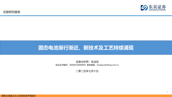 【东吴证券】【20250710】固态电池渐行渐近、新技术及工艺持续涌现-25页 证券期货研究报告