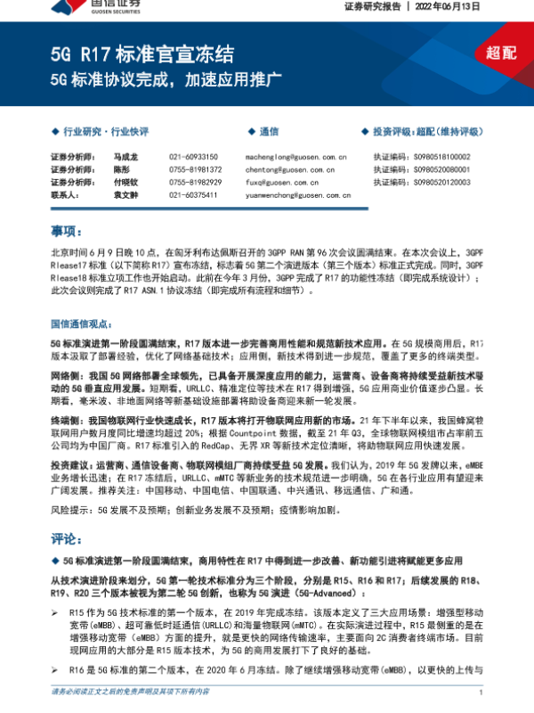 【国信证券】【20220613】5G R17标准官宣冻结-5G标准协议完成,加速应用推广-12页 行业研究
