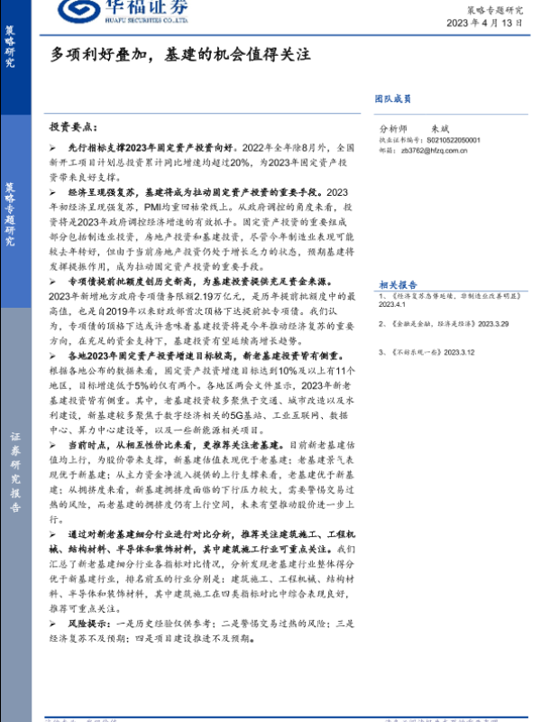 【华福证券】【20230413】策略专题研究:多项利好叠加,基建的机会值得关注-19页 行业研究