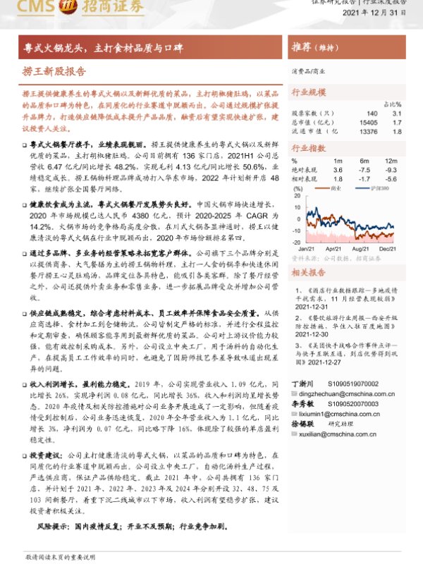 【海通证券】【20211231】商业行业捞王新股报告:粤式火锅龙头,主打食材品质与口碑-22页 行业研究