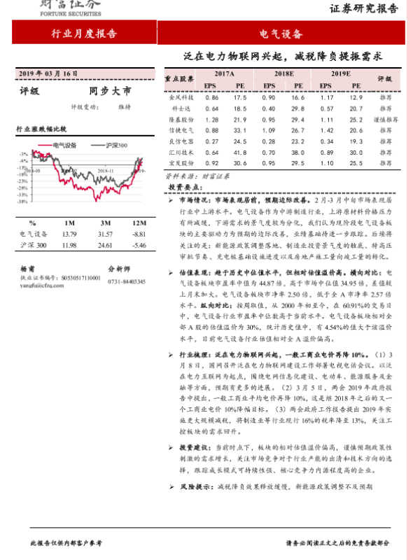 【财信证券】【20190316】电气设备行业月度报告:泛在电力物联网兴起,减税降负提振需求-17页 行业研究