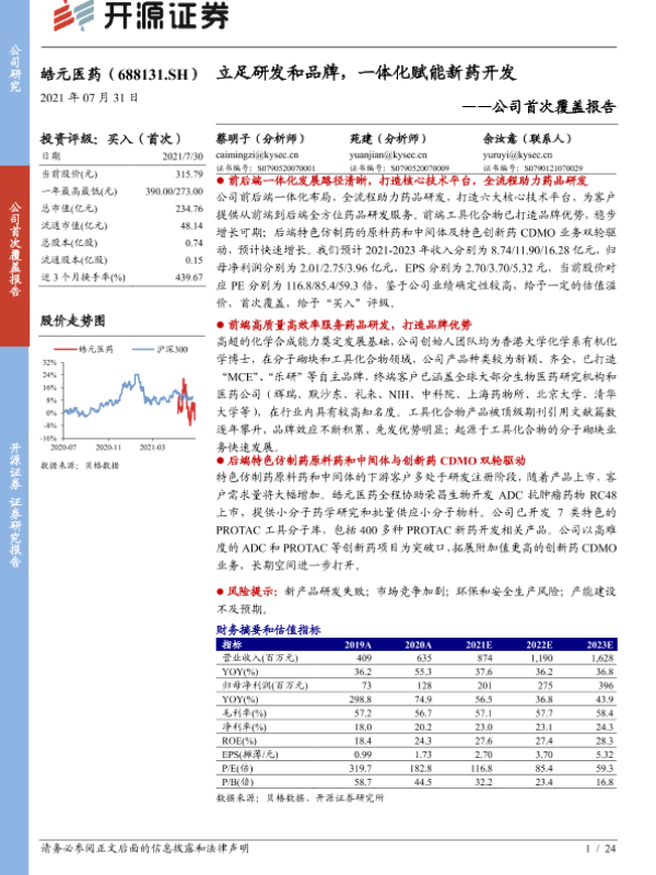 【开源证券】【20210731】立足研发和品牌,一体化赋能新药开发——公司首次覆盖报告-24页 行业研究
