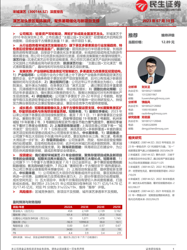 【民生证券】【20230710】宋城演艺深度报告(300144):演艺龙头景区矩阵展开,聚焦暑期催化与新项目支撑-39页 行业研究
