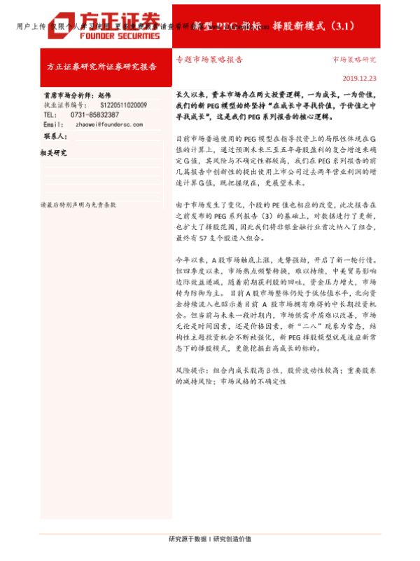 【方正证券】【20191223】专题市场策略报告:新型PEG指标,择股新模式(3.1)-10页 证券期货研究报告