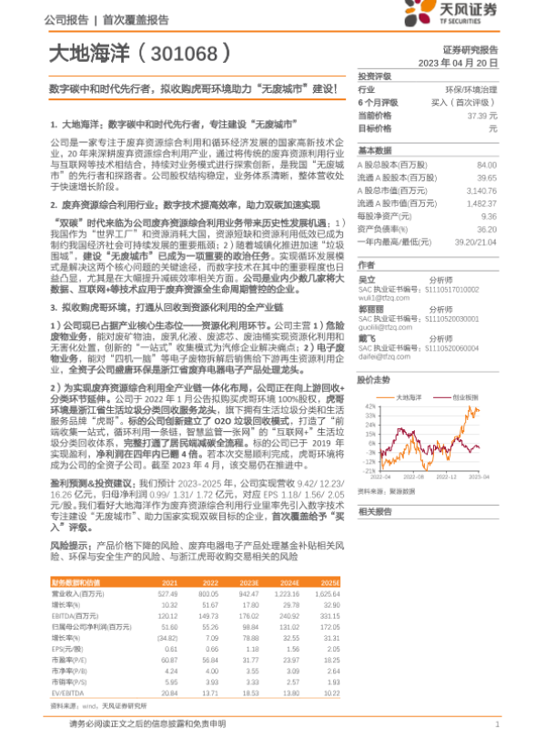 【天风证券】【20230420】数字碳中和时代先行者,拟收购虎哥环境助力“无废城市”建设!-29页 行业研究