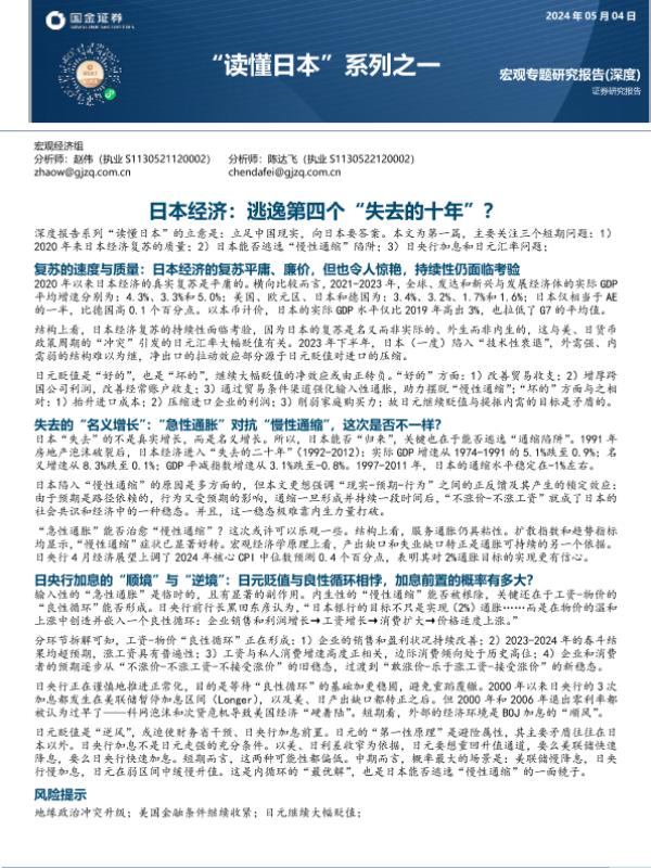 【国金证券】【20240504】“读懂日本”系列之一:日本经济,逃逸第四个“失去的十年”-32页 行业研究