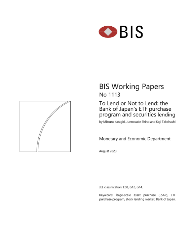 【国际清算银行】【202308】借出还是不借出:日本央行的ETF购买计划和证券借贷-40页 行业研究