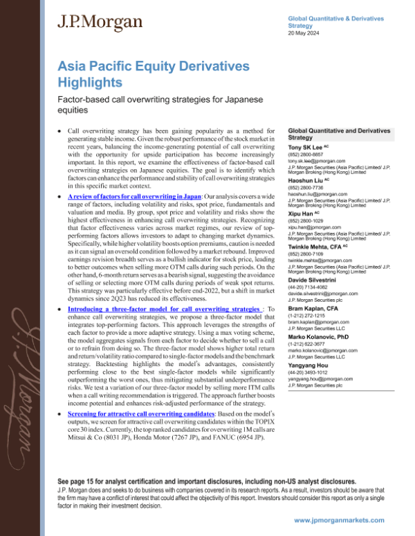 【J.P. Morgan】【20240520】亚太区股权衍生品亮点:基于因子的看涨期权覆盖策略-20页 行业研究