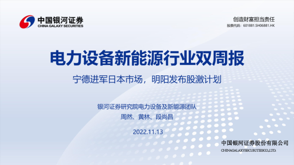 【银河证券】【20221113】电力设备新能源行业双周报:宁德进军日本市场,明阳发布股激计划-55页 行业研究