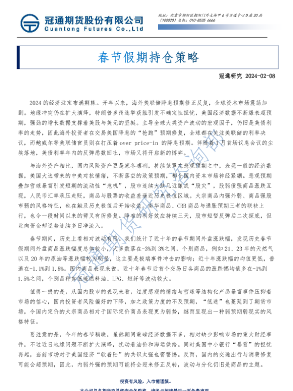 【冠通期货】【20240208】春节假期持仓策略-27页 行业研究