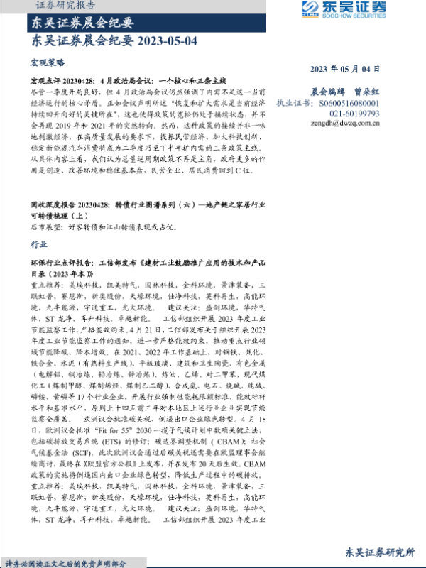 【东吴证券】【20230504】晨会纪要-20230504-东吴证券-82页 行业研究