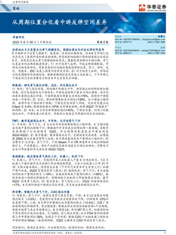 【华泰证券】【20220608】策略月报:从周期位置分化看中游反弹空间差异-35页 行业研究