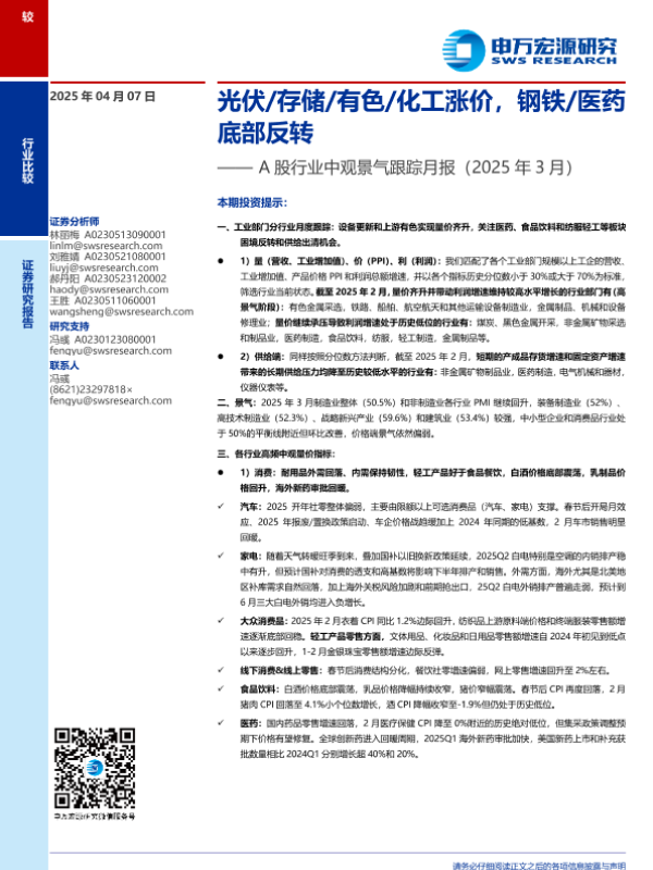 【申万宏源】【20250407】A股行业中观景气跟踪月报-17页 行业研究
