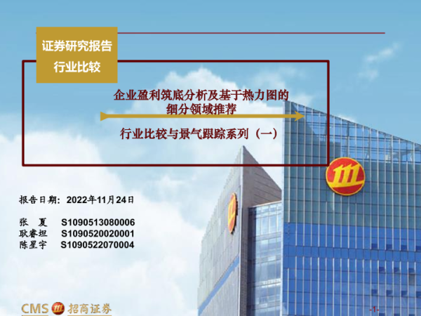 【海通证券】【20221124】行业比较与景气跟踪系列(一):企业盈利筑底分析及基于热力图的细分领域推荐-59页 行业研究
