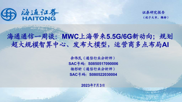 【海通证券】【20230703】海通通信一周谈:MWC上海带来5.5G 6G新动向;规划超大规模智算中心、发布大模型,运营商多点布局AI-11页 行业研究