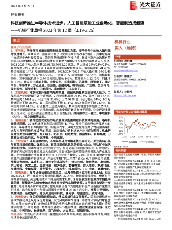 【光大证券】【20230327】机械行业周报2023年第12周:科技创新推进半导体技术进步,人工智能赋能工业自动化,智能制造成趋势-21页 行业研究