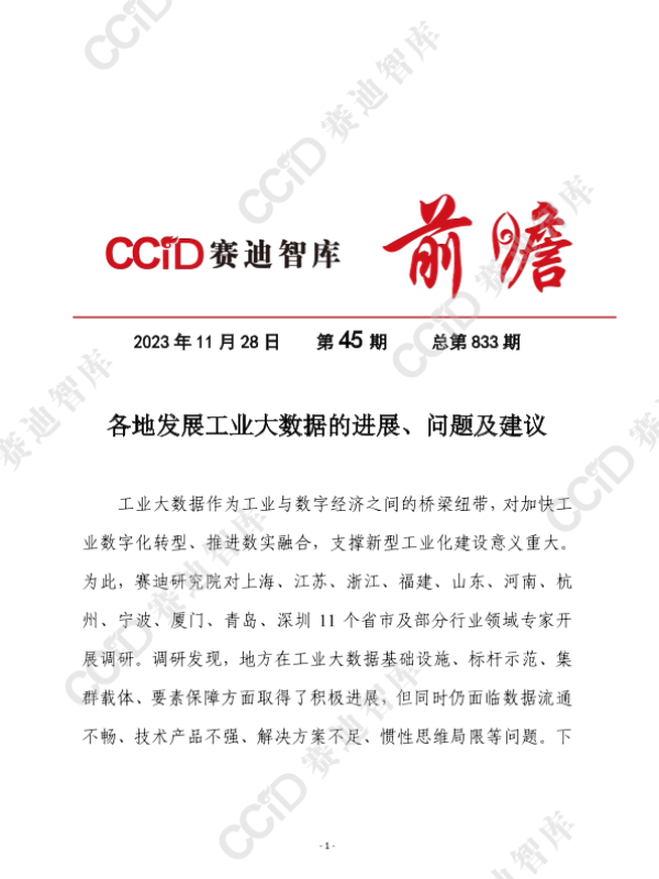 【赛迪研究院】【20231128】各地发展工业大数据的进展、问题及建议-12页 行业研究