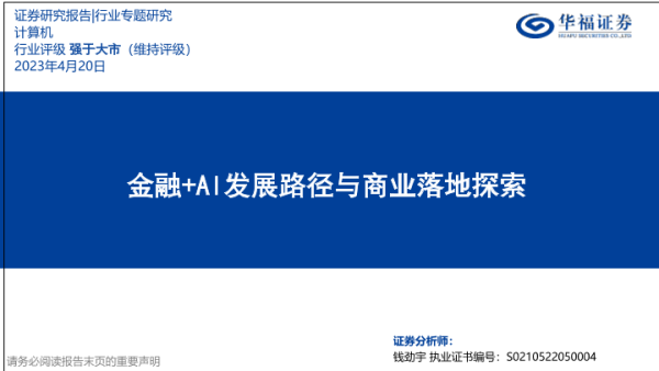 【华福证券】【20230420】计算机行业专题研究:金融+AI发展路径与商业落地探索-21页 行业研究