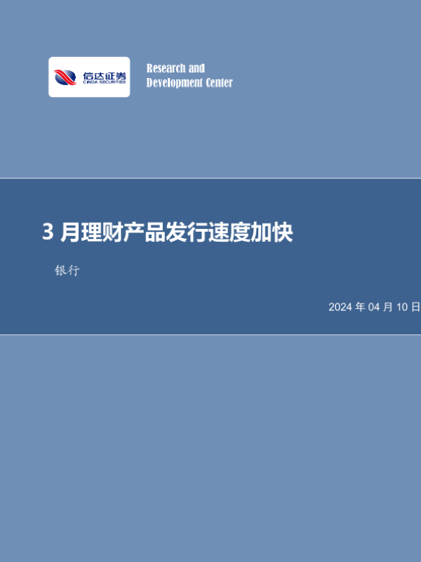【信达证券】【20240410】银行业月报:3月理财产品发行速度加快-28页 行业研究