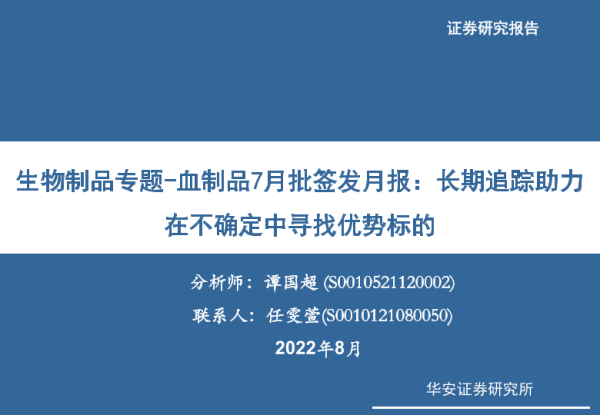 【华安证券】【202208】生物制品行业专题:血制品7月批签发月报,长期追踪助力在不确定中寻找优势标的-23页 行业研究