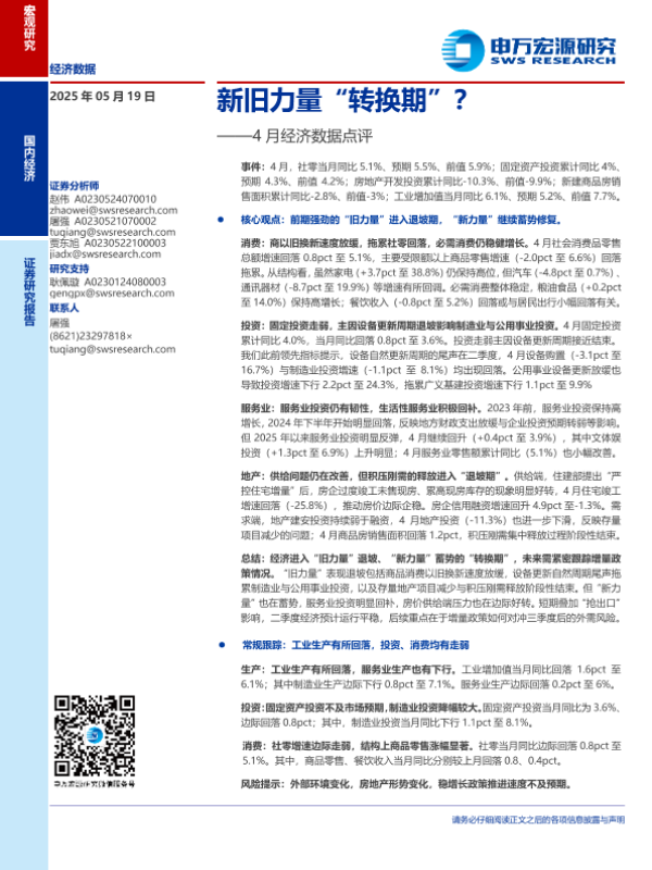 【申万宏源】【20250519】4月经济数据点评:新旧力量“转换期”?-10页 宏观策略