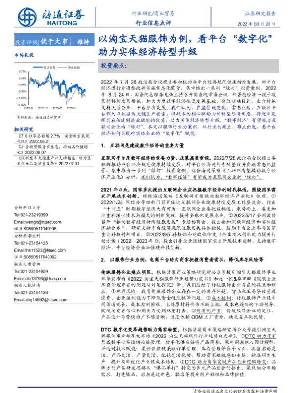 【海通证券】【20220826】以淘宝天猫服饰为例,看平台‘数字化’助力实体经济转型升级-3页 行业研究