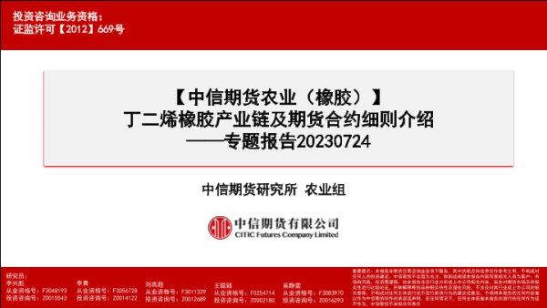 【中信期货】【20230724】【中信期货农业(橡胶)】专题报告:丁二烯橡胶产业链及期货合约细则介绍-32页 行业研究