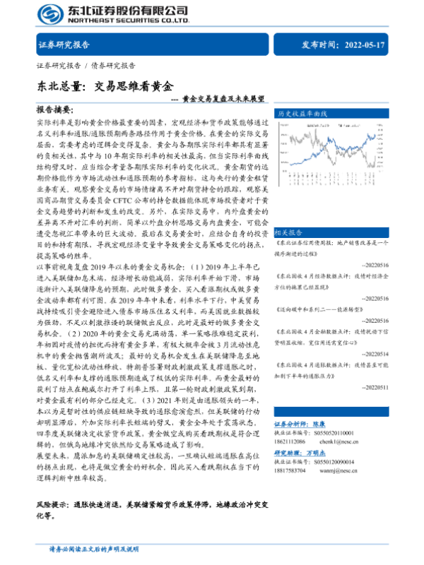 【东北证券】【20220517】黄金交易复盘及未来展望:东北总量,交易思维看黄金-32页 行业研究