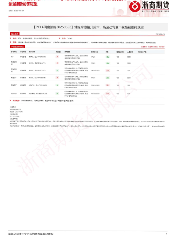 【浙商期货】【20250622】PXTA周度策略-10页 证券期货研究报告