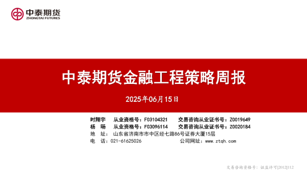 【中泰期货】【20250615】金融工程策略周报-28页 证券期货研究报告