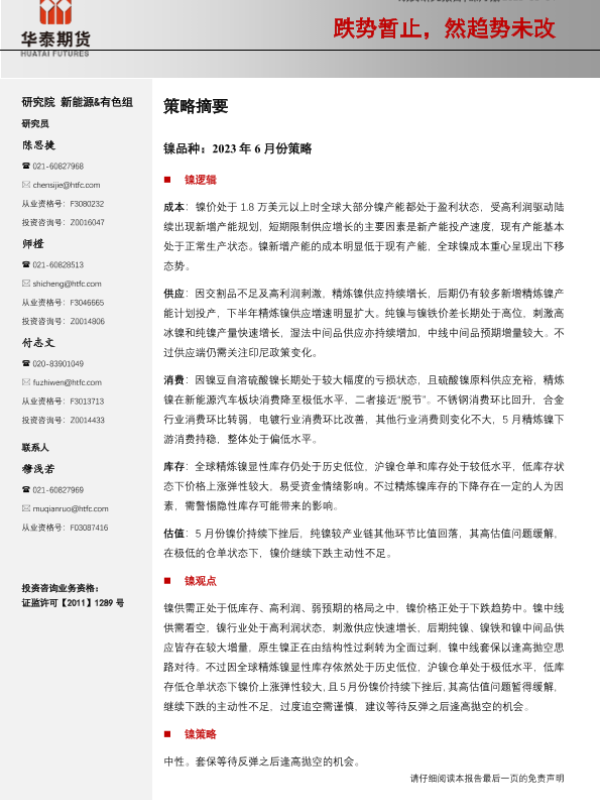 【华泰期货】【20230604】镍月报:跌势暂止,然趋势未改-29页 行业研究