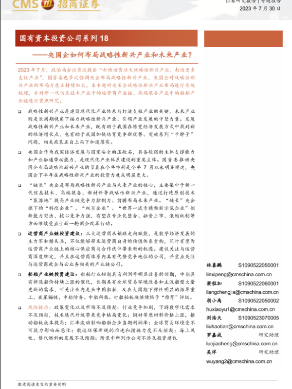 【海通证券】【20230730】央国企如何布局战略性新兴产业和未来产业?-68页 行业研究