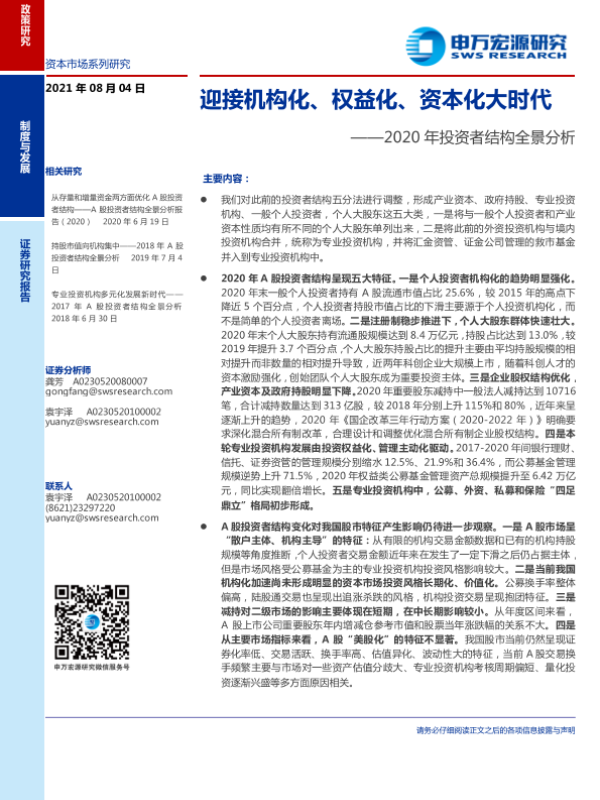 【申万宏源】【20210804】2020年投资者结构全景分析:迎接机构化、权益化、资本化大时代-21页 行业研究