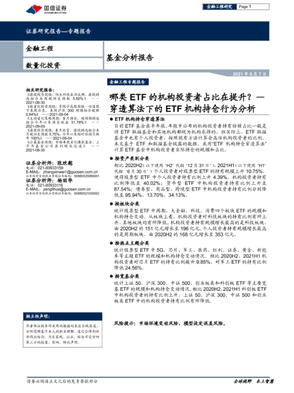 【国信证券】【20210907】基金分析报告:穿透算法下的ETF机构持仓行为分析,哪类ETF的机构投资者占比在提升?-22页 行业研究