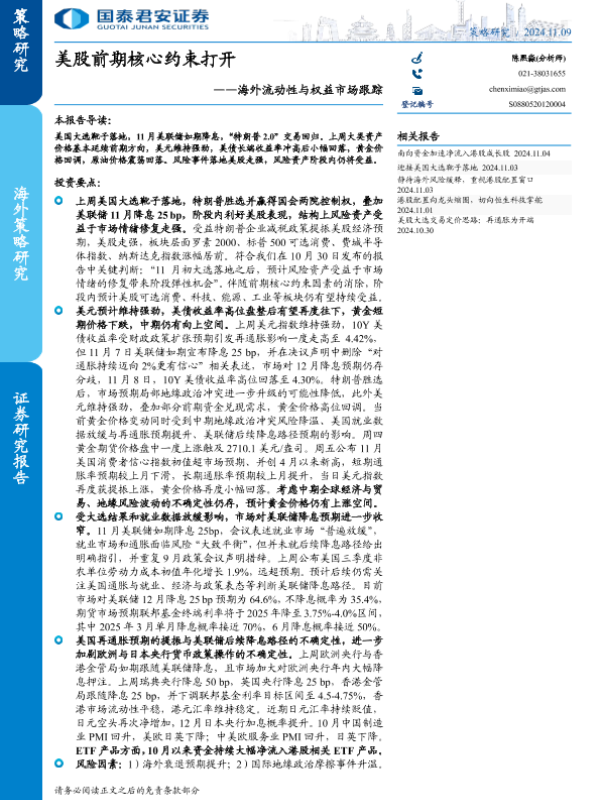 【国泰君安证券】【20241109】海外流动性与权益市场跟踪:美股前期核心约束打开-23页 宏观策略