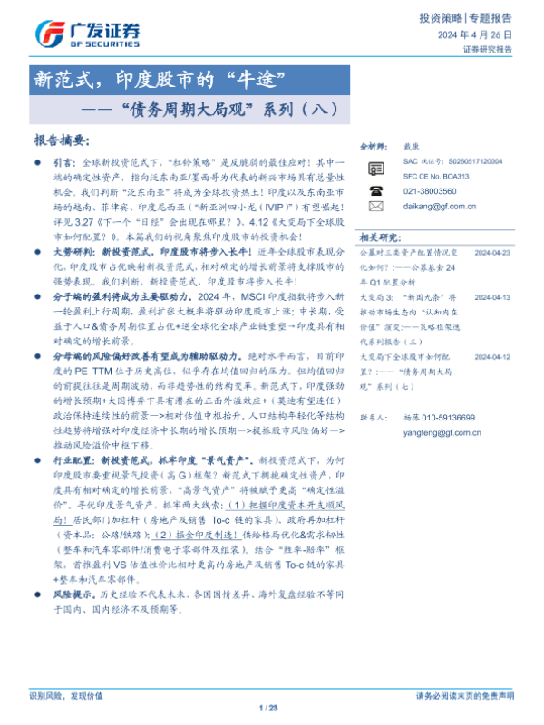 【广发证券】【20240426】“债务周期大局观”系列(八):新范式,印度股市的“牛途”-23页 行业研究